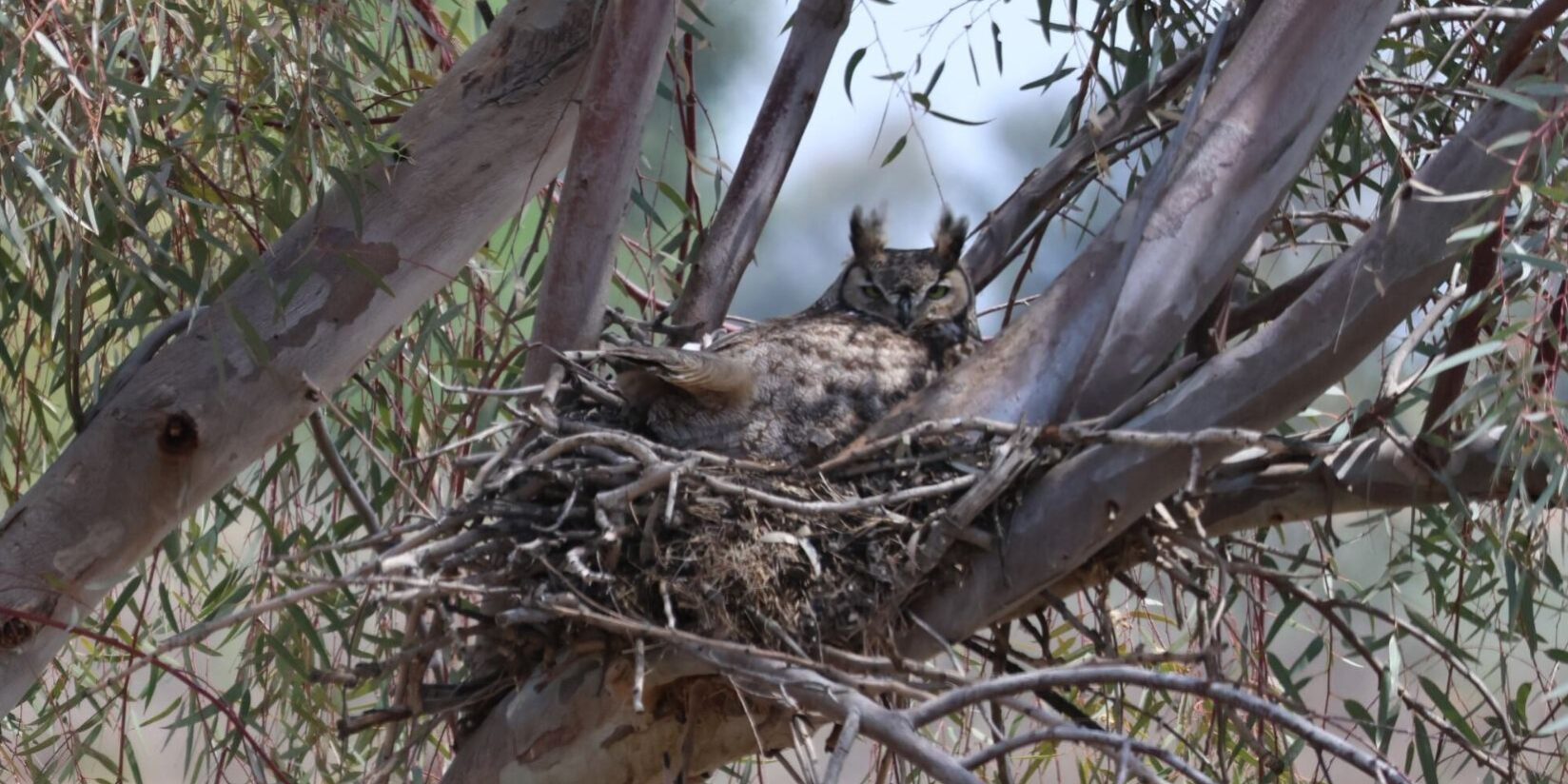 Nests can be found in trees, burrows, or manmade structures like bridges and weirs. Species like great horned owls don’t build nests of their own, but instead reuse old nests from other birds. Cliff swallows build mud nests on vertical surfaces, often in large colonies. Burrowing owls rely on ground burrows, making them harder to spot without a careful look.